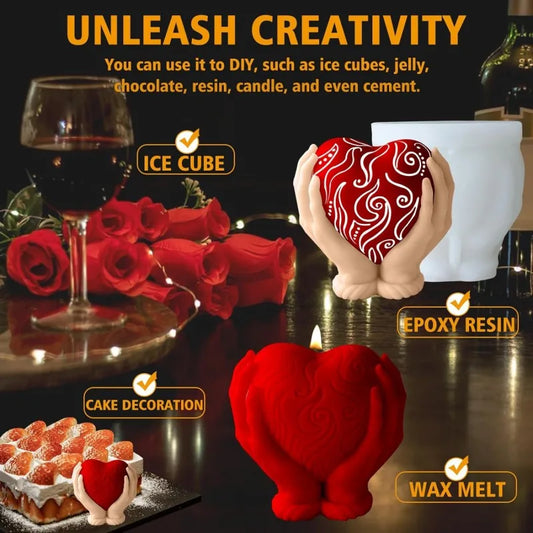 3D Heart Shape Candle Molds Hand Holding Silicone for Valentine's Day