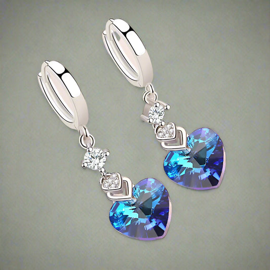 925 Sterling Silver Earrings Blue Crystal Heart-Shaped Zircon