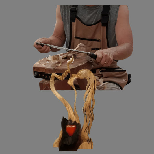 Love Eternal Wooden Hearts Couple Kissing Sculpture